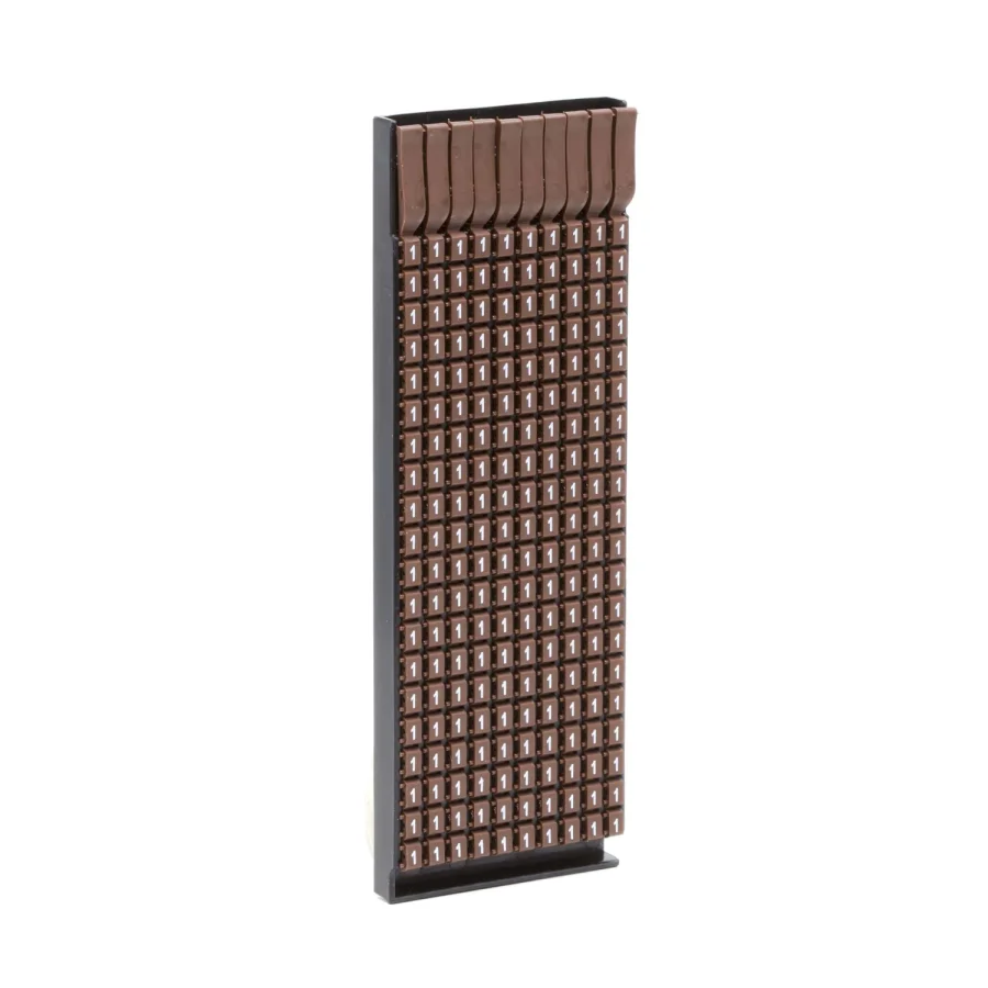 Ручная маркировка системы MARK 3 для маркировки проводов без разъединения электрической цепи из полиамида 6.6. Температура эксплуатации от –30 до +70 °С. Боковые штифты надежно фиксируют соединение друг с другом и позволяют добиться точного выравнивания маркеров. Цвет маркеров соответствует международной кодировке. Символ "1" белого цвета на коричневом маркере для сечения провода 4-6 мм2. В упаковке 160 маркеров.