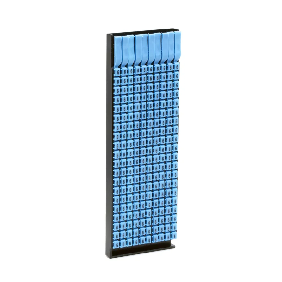 Ручная маркировка системы MARK 3 для маркировки проводов без разъединения электрической цепи из полиамида 6.6. Температура эксплуатации от –30 до +70 °С. Боковые штифты надежно фиксируют соединение друг с другом и позволяют добиться точного выравнивания маркеров. Цвет маркеров соответствует международной кодировке. Символ "6" черного цвета на голубом маркере для сечения провода 1.5-2.5 мм2. В упаковке 200 маркеров