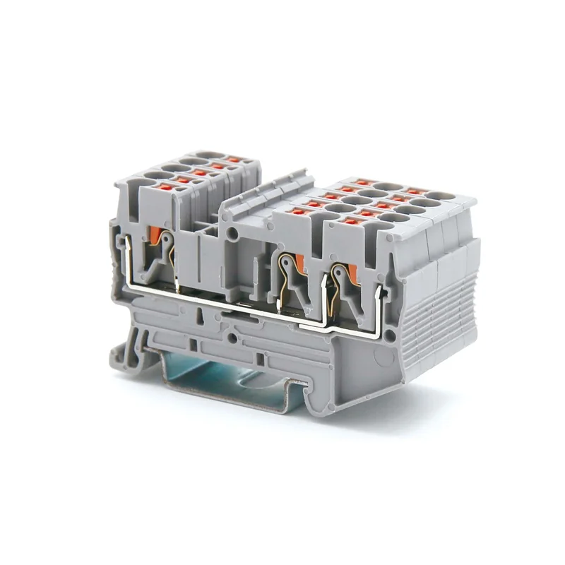 Клемма проходная, зажим push-in, 3 точки подключения, 2.5 кв.мм, серая DKC VPR-2.5-TWIN-GY