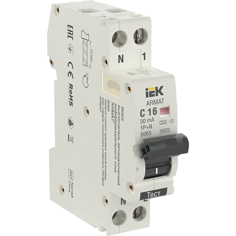 ARMAT АВДТ B06S 1P+NP C16 30мА тип A (18мм) IEK AR-B06S-1N-C16A030