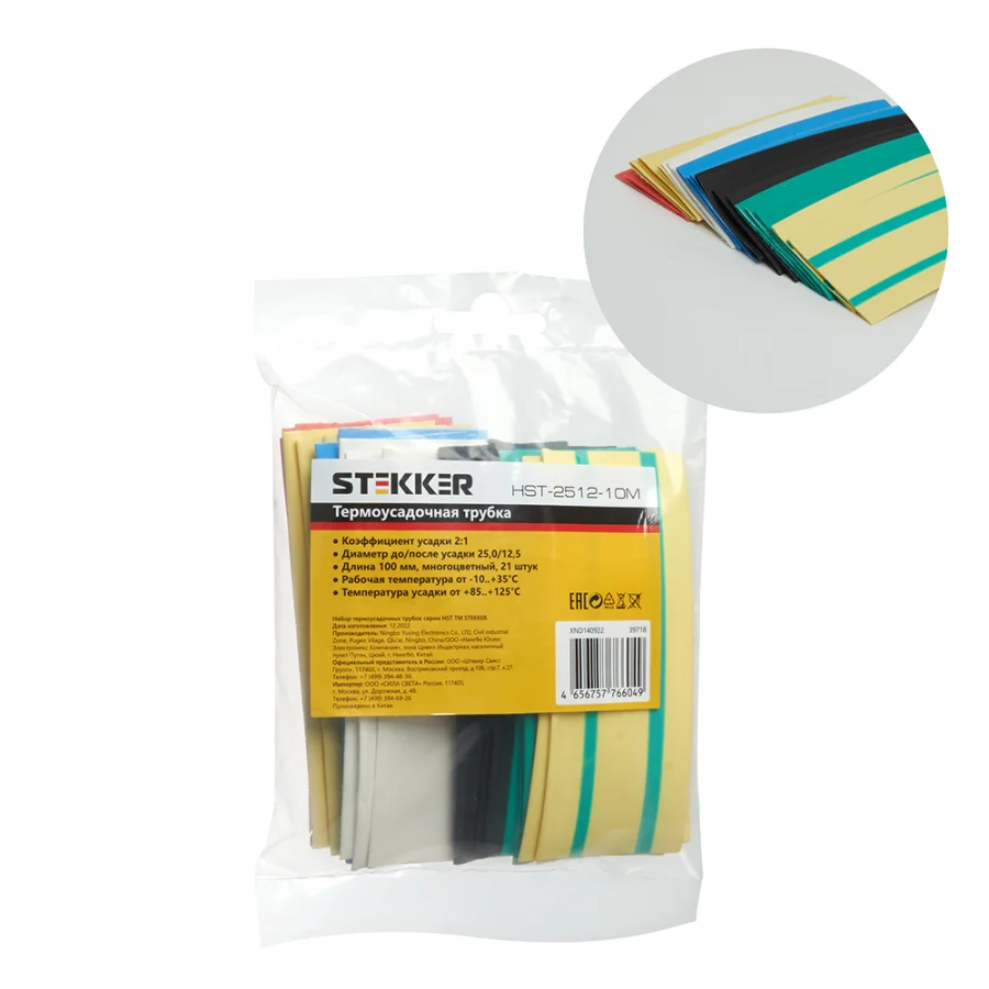 HST-2512-10M Набор термоусадочных трубок 25,0/12,5 длина 10 см, усадка 2:1, мультиколор (21шт в уп)