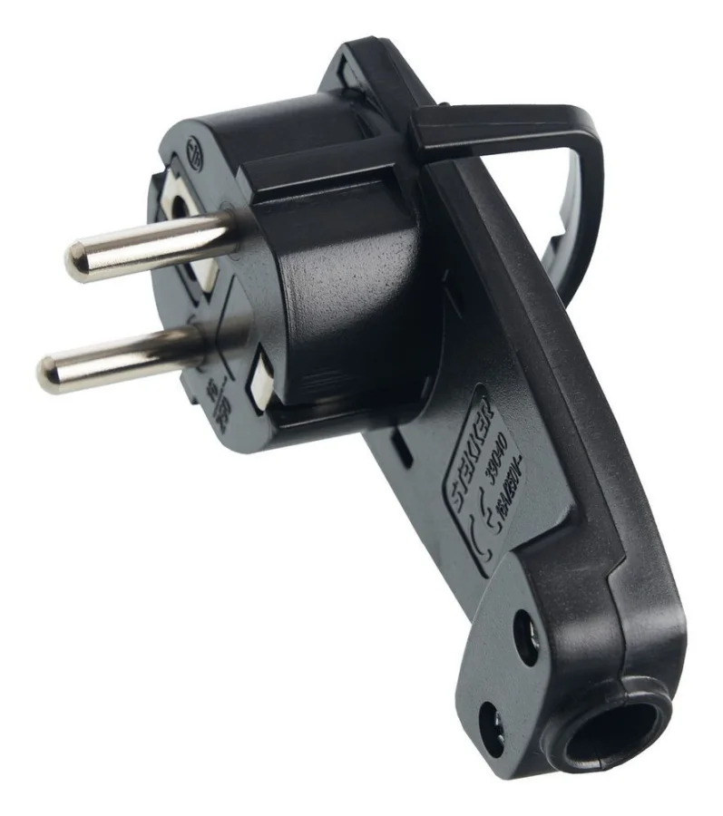 Вилка угловая плоская с кольцом с/з, PPG16-45-202, черный STEKKER 39040