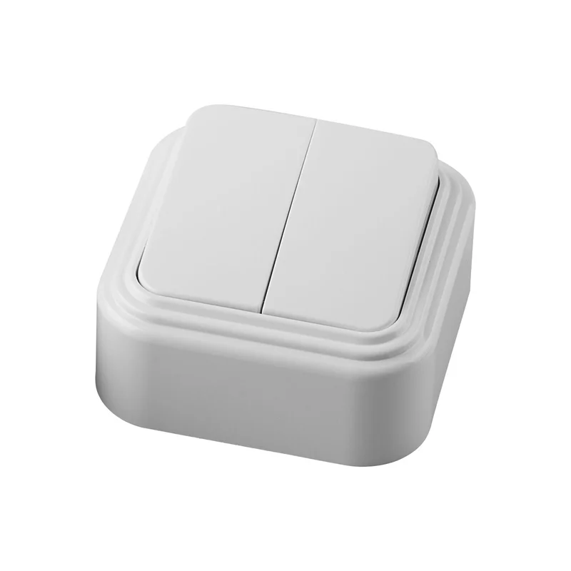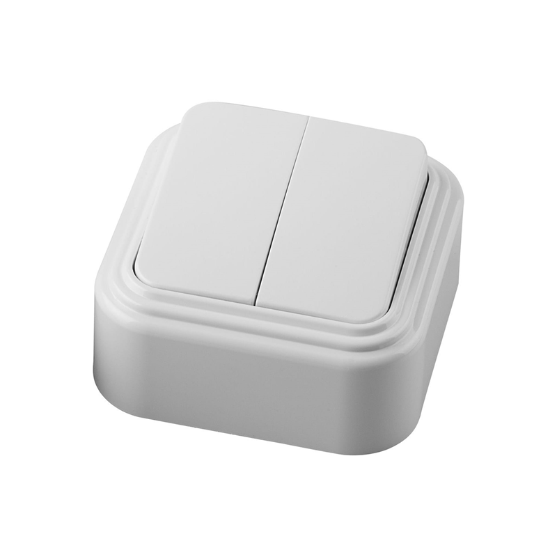 Выключатель двухклавишный открытой установки, 250В, 6А, IP20, белый, PSW06-22-20 (VA5 6-232-Б) STEKK
