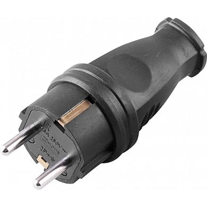 Вилка прямая с/з, каучук 250В, 16A, IP44, RPG16-21-441 (В 16-001), черный STEKKER 32748