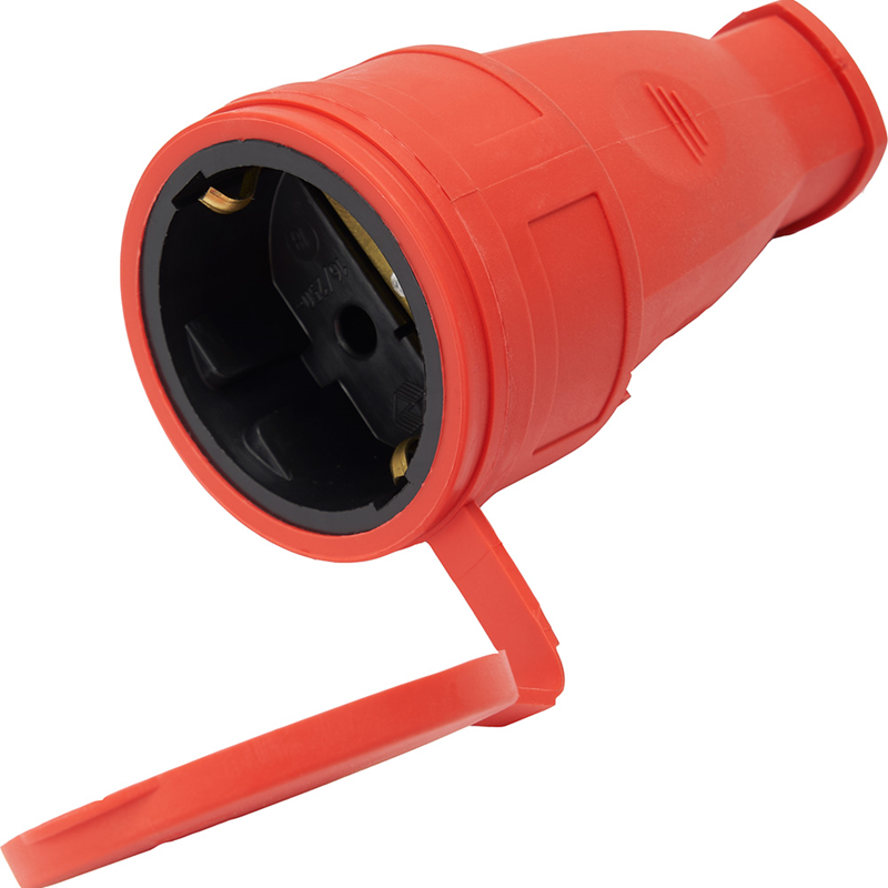Розетка переносная 1-местная с/з, с крышкой, каучук, серия Одри, RST16-21-44 (РА 16-005), красный ST