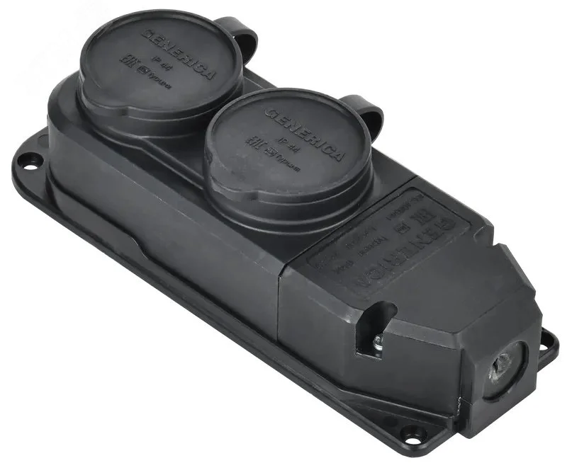 Розетка (колодка) 2-ая с защит. кр. 16А IP44 черная GENERICA ERK20-016-02-44-K02-G
