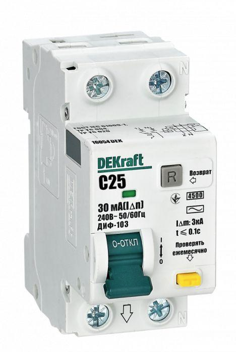 АВДТ 1Р+N 25А 30мА тип AC х-ка C ДИФ-103 4.5кА нов. DEKraft 16054DEK