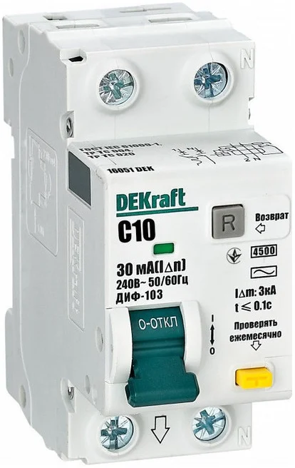 АВДТ 1Р+N 10А 30мА тип AC х-ка C ДИФ-103 4.5кА нов. DEKraft 16051DEK