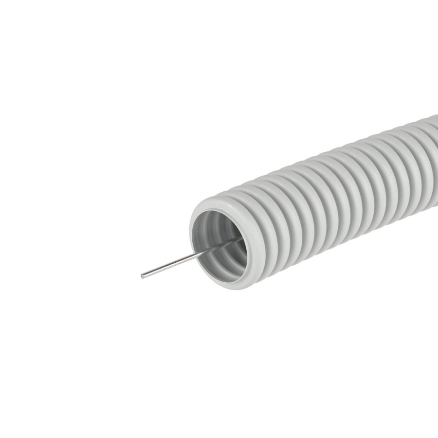 Диаметр - 32 мм. Материал – самозатухающий поливинилохлорид (ПВХ). Цвет - серый. Гофрированные трубы из ПВХ легкой серии могут эксплуатироваться при температуре от – 25 °С до + 60 °С. Длина – 25 метров