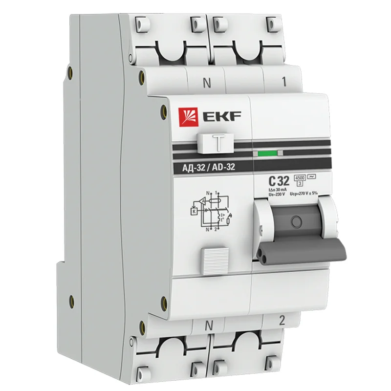 Дифференциальный автомат АД-32 1P+N 32А/30мА (хар. C, AC, электронный, защита 270В) 4,5кА PROxim EKF