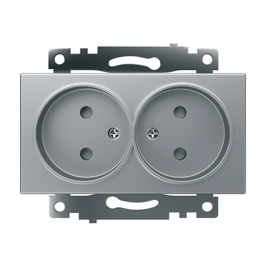 Розетка 2-местная с защитной шторкой (механизм) б/з, 250В, 10А, серия Катрин, GLS10-7113-03, серебро