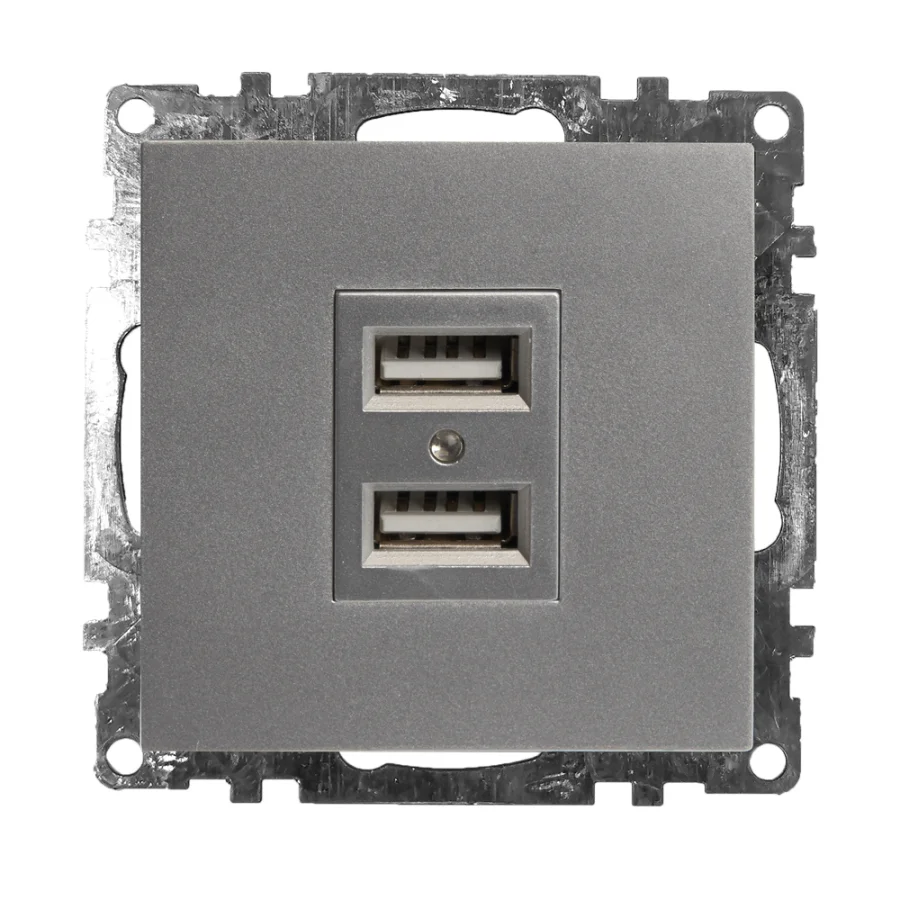 Розетка 2-местная USB (механизм), 250В, 2,1А, серия Катрин, серебро, GLS10-7115-03 STEKKER 39588