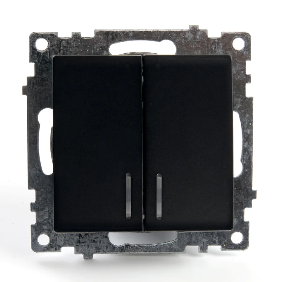 Выключатель 2-клавишный c индикатором (механизм) 250В, 10А, серия Катрин, GLS10-7102-05, черный STEK