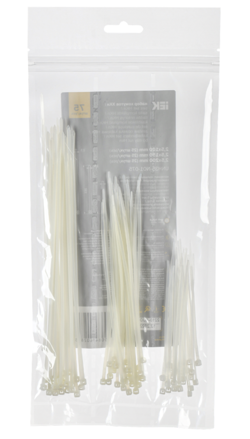 Набор хомутов 2,5х100; 2,5х150; 2,5х200 бел. (75шт/упак) IEK UNH35-N01-075