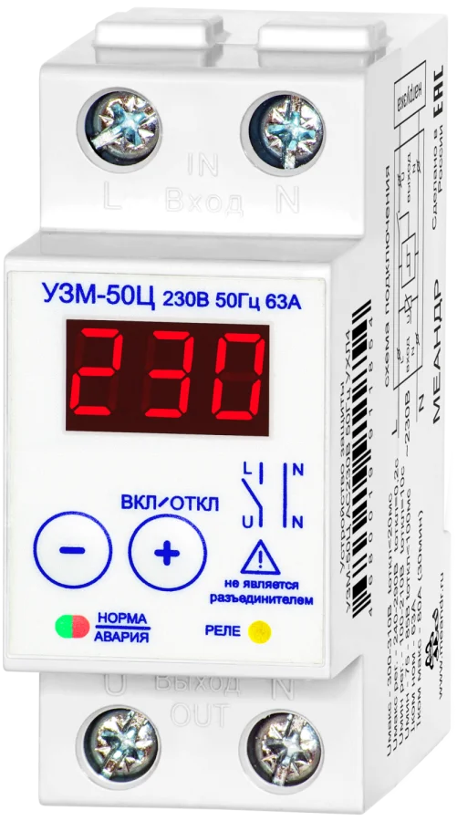 Устройство защиты многофункциональное УЗМ-50Ц 63А 20-440В Меандр 2468880019912