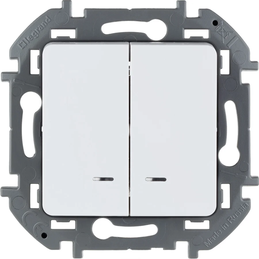 Выключатель двухклавишный с подсветкой/индикацией - Inspiria - 10А 250В безвинтовые зажимы - Legrand