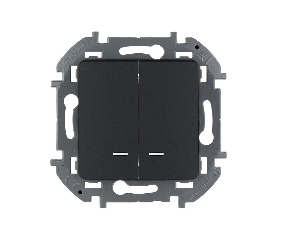 Выключатель двухклавишный с подсветкой/индикацией - INSPIRIA - 10 AX - 250 В~ - антрацит 673 Legrand