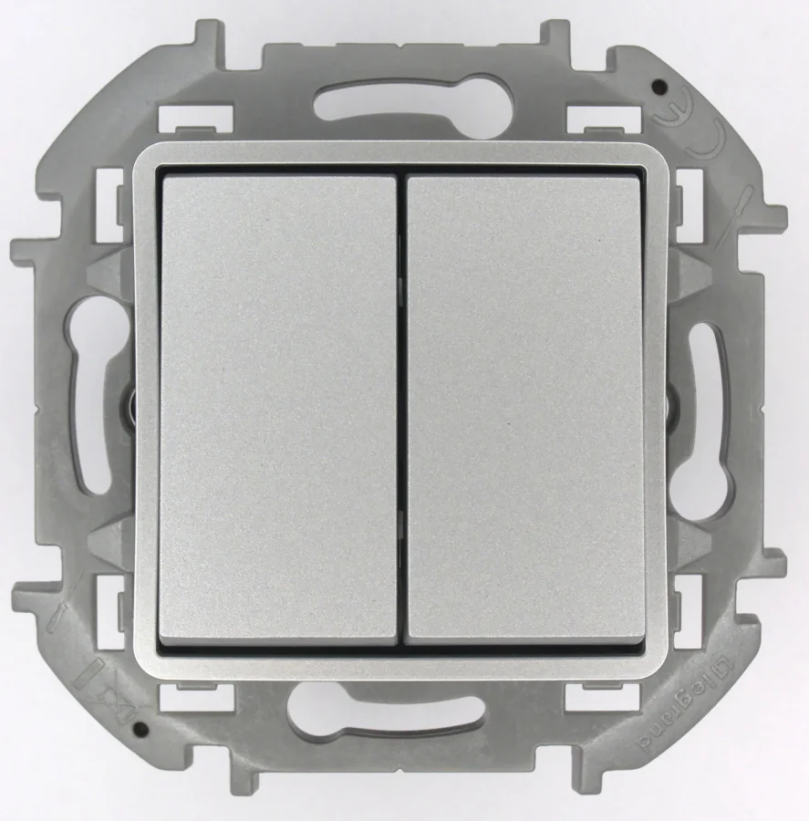 Переключатель модульный двухклавишный с подсветкой - INSPIRIA - 10 AX - 250 В~ - алюминий 67 Legrand
