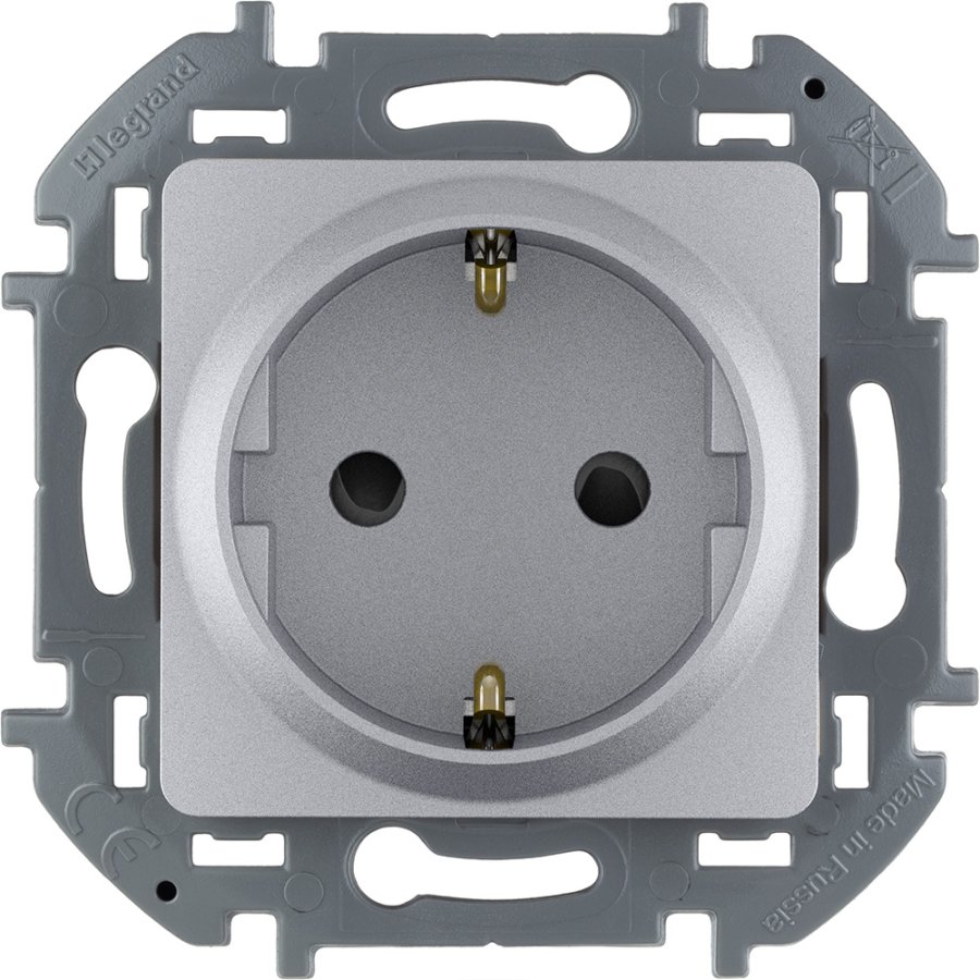 Розетка 2К+З со шторками - немецкий стандарт - 16 А - 250 В~ - INSPIRIA - алюминий Legrand 673732