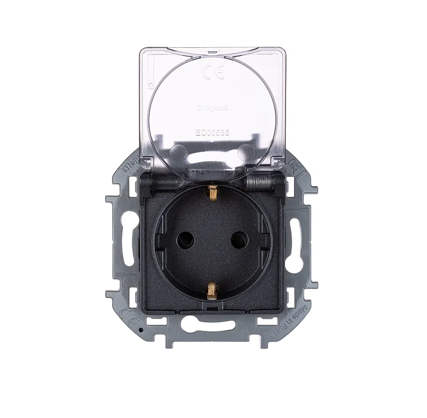 Розетка 2К+З IP 44 с откидной крышкой и шторками - немецкий стандарт - 16 А - 250 В~ - INSPIRIA - ан