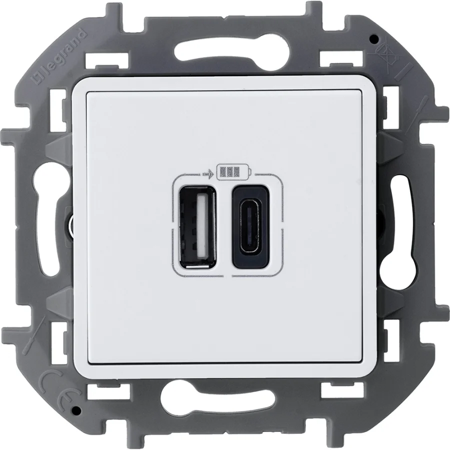 Зарядное устройство USB тип А+С - Inspiria - 3000мА 5В - белый Legrand 673760