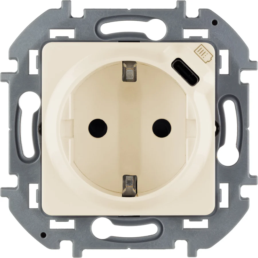 Розетка 2К+З немецкий стандарт 16А 250В со встроенным зарядным устройством USB C 1.5А 5В - INSPIRIA