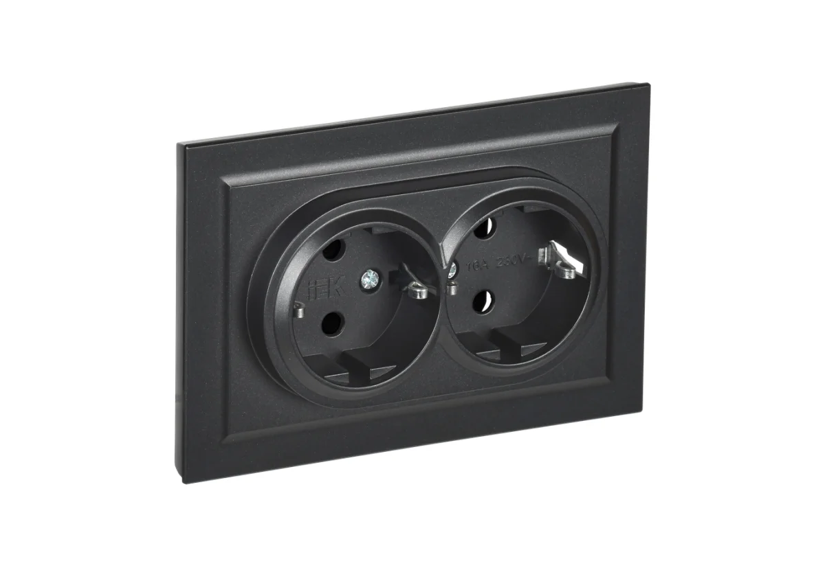 BRITE Роз. 2-я с з/к без з/ш 16А в сб. РС12-3-БрЧ черн. IEK BR-R21-16-K02-F