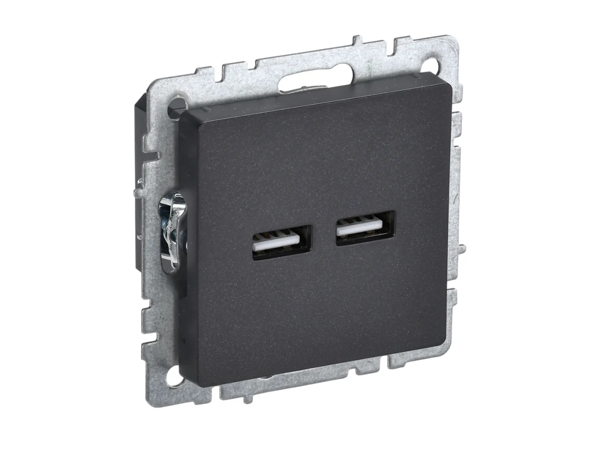 BRITE Роз. USB A+A 3,1А РЮ10-1-БрЧ черн. IEK BR-U21-D31-K02
