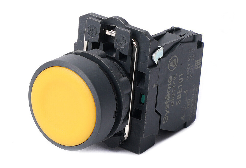 Кнопка SB5 в сборе модульная 22мм желтая с возвратом пластик 1НО Systeme Electric SB5AA51