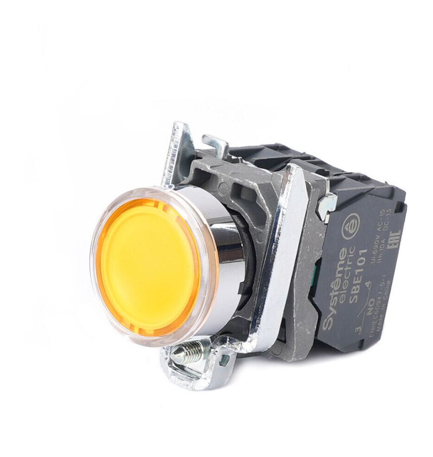 Кнопка SB4 с подсветкой в сборе модульная 22мм желтая металл 24ВDC 1НО+1НЗ SB4BW35B Systeme Electric