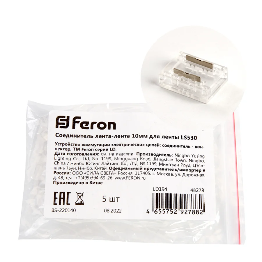 Соединитель лента-лента 12мм для COB ленты шириной 10 мм, LD194 FERON Feron 48278