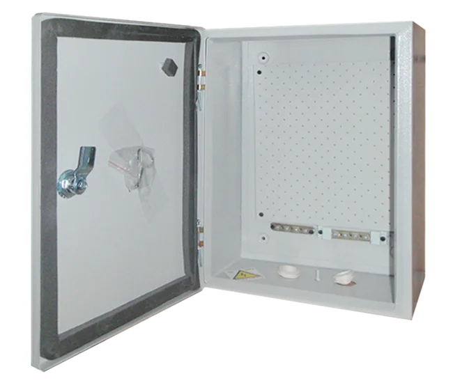 Предназначен для установки различного электрооборудования. Имеет перфорированную монтажную панель и уплотнение из вспененого каучука. Толщина металла 0,8 мм. Возможен монтаж на открытом воздухе и во (влажных помещениях. Запорное устройство - замок под мастер-ключ.