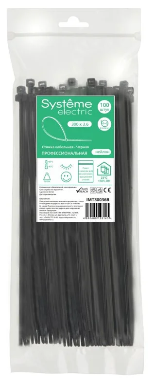 Стяжка кабельная нейлоновая 300х3.6 Чёрная (100шт) в пакете с замком ЗИП-ЛОК IMT300 Systeme Electric