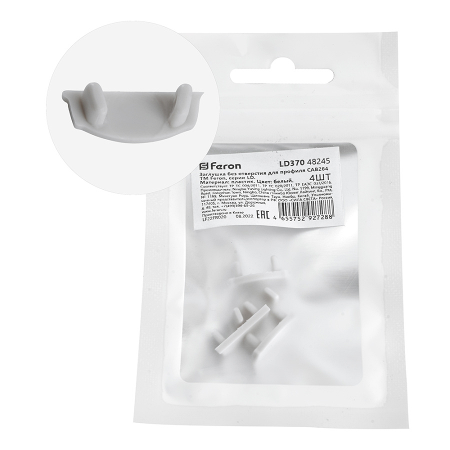 Заглушка без отверстия для профиля CAB264, LD370 (комплект 4шт) FERON Feron 48245
