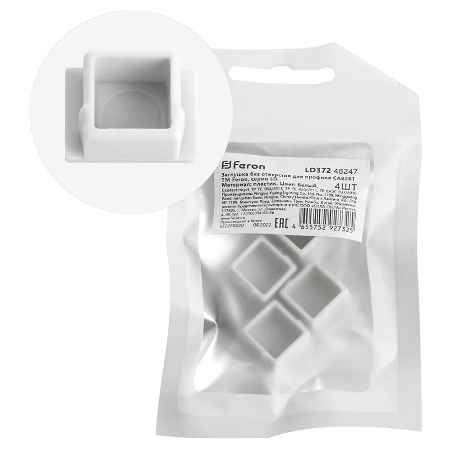 Заглушка без отверстия для профиля CAB261, LD372 (комплект 4шт) FERON Feron 48247