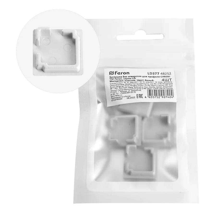 Заглушка без отверстия для профиля CAB281, LD377 (комплект 4шт) FERON Feron 48252