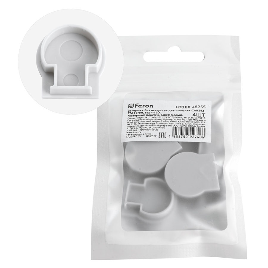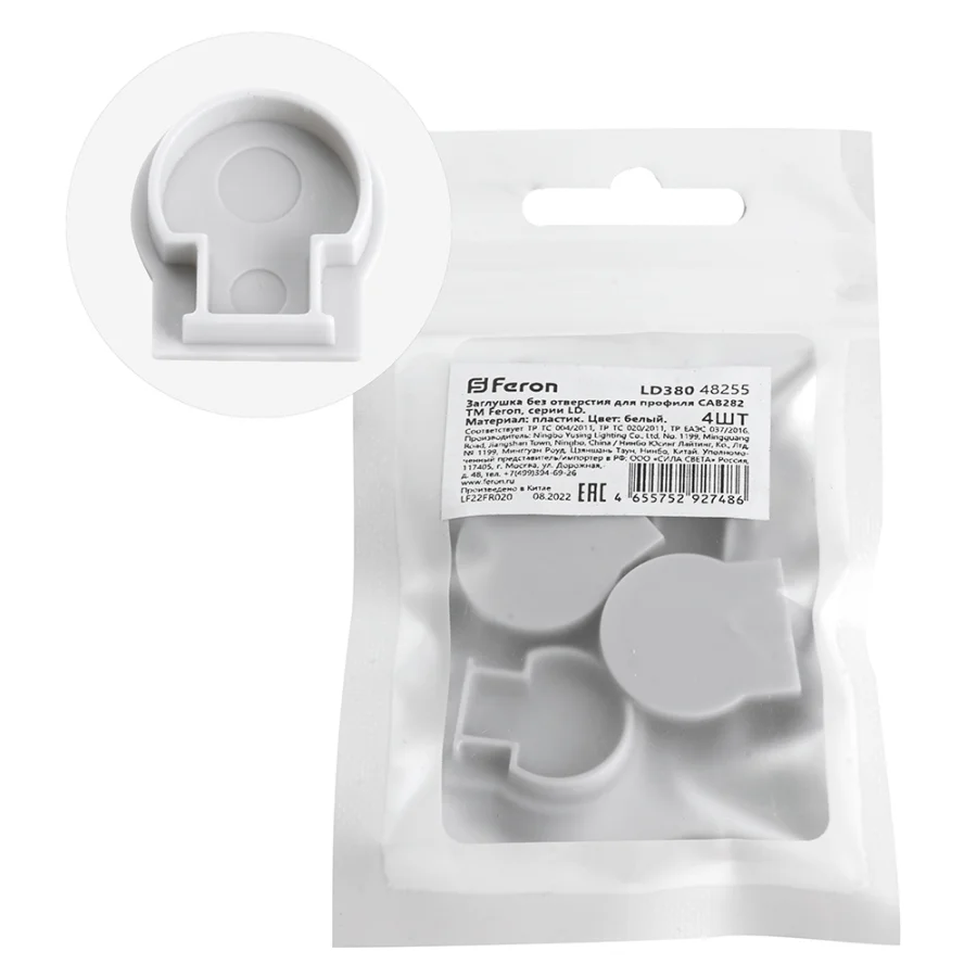 Заглушка без отверстия для профиля CAB282, LD380 (комплект 4шт) FERON Feron 48255