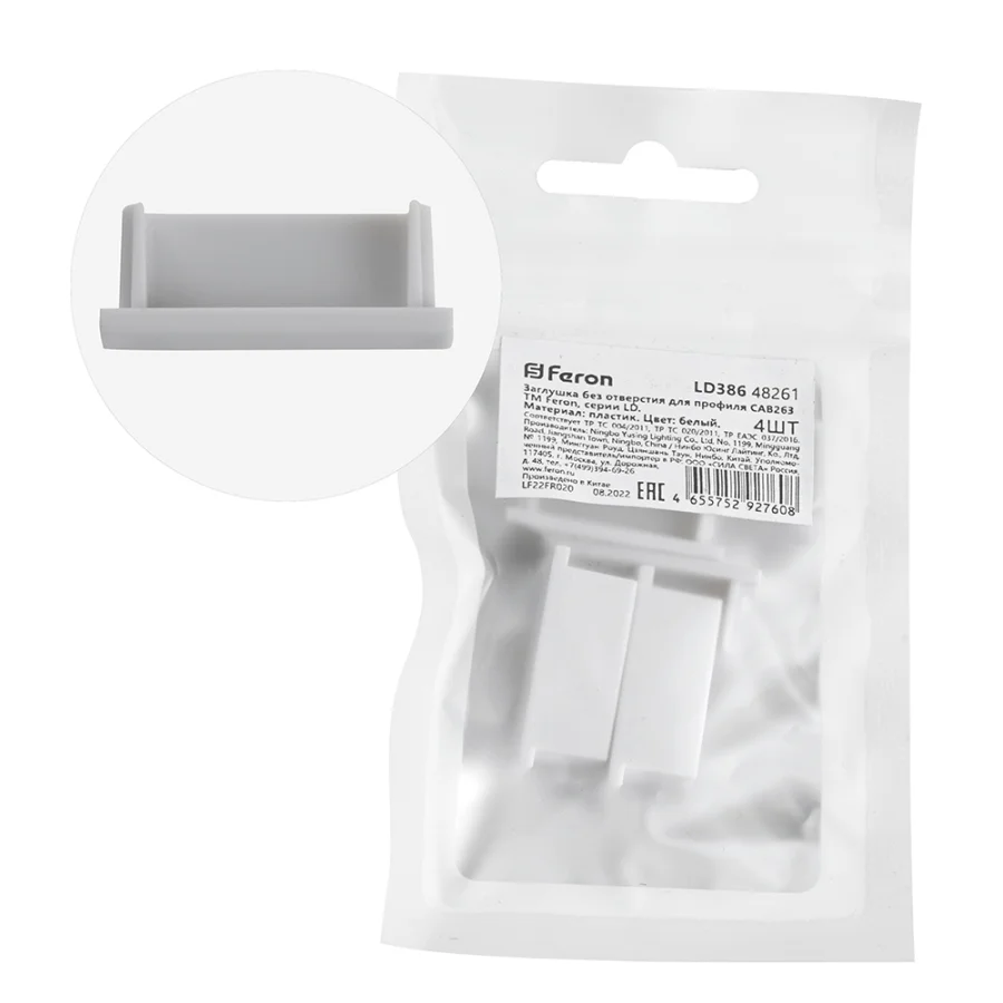 Заглушка без отверстия для профиля CAB263, LD386 (комплект 4шт) FERON Feron 48261
