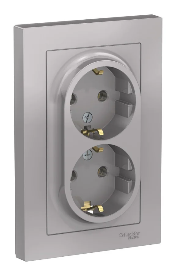 ATLASDESIGN РОЗЕТКА двойная с заземлением, 16А, в сборе, АЛЮМИНИЙ Systeme Electric ATN000324
