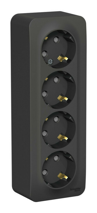 BLANCA О/У РОЗЕТКА 4-я с заземл. со шторк. ИЗОЛ.ПЛ.,16А, 250В, АНТРАЦИТ Systeme Electric BLNRA011416