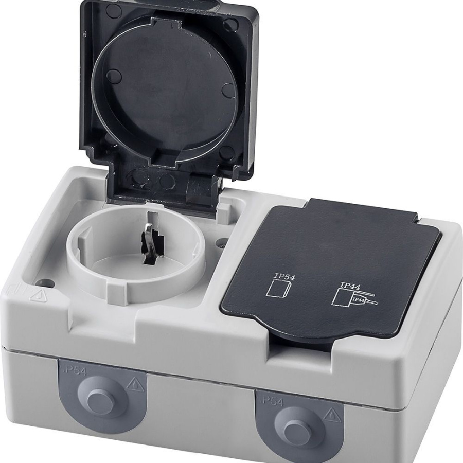 Розетка 2-местная с крышкой с/з, 250В, 16А, серия Велена, PST16-12-54, серый/графит STEKKER 32754