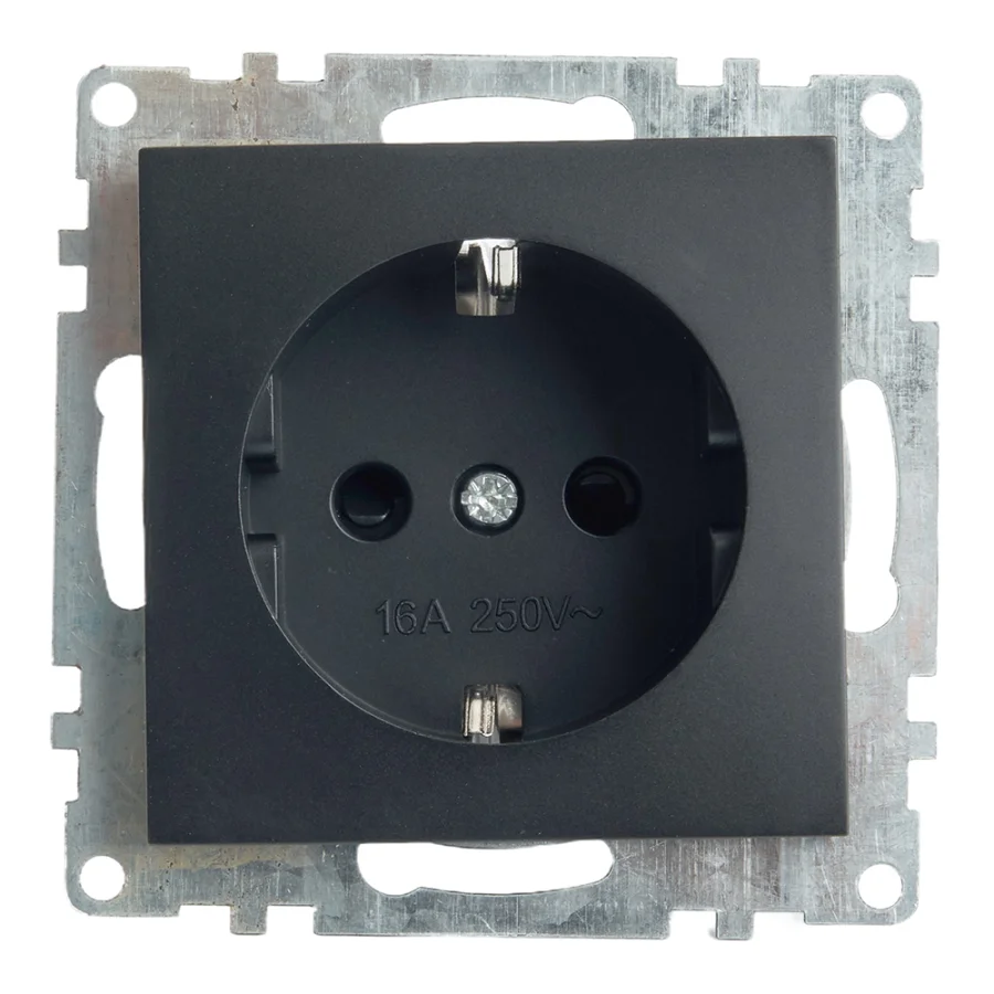 Розетка 1-местная с защитной шторкой с/з (механизм), 250В, 16А, серия Катрин, GLS16-7110-05, черный