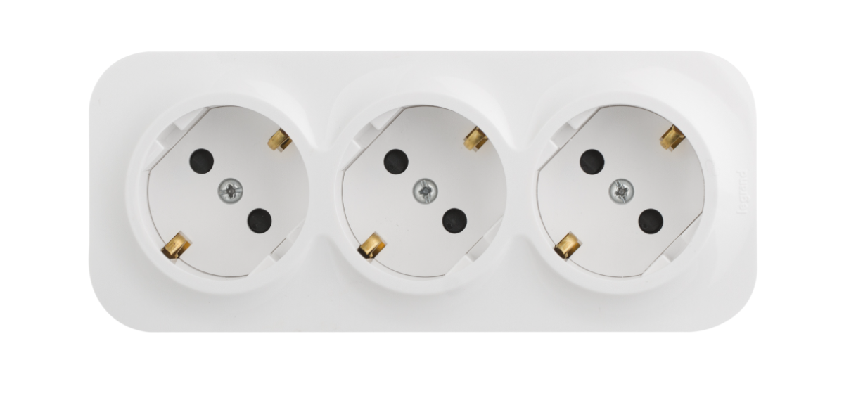 Розетка тройная Quteo с заземлением со шторками белая Legrand 782238