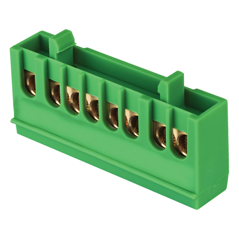 Шина "0" PE (6х9мм) 8 отверстий латунь зеленый изолированный корпус на DIN-рейку розничный стикер EK