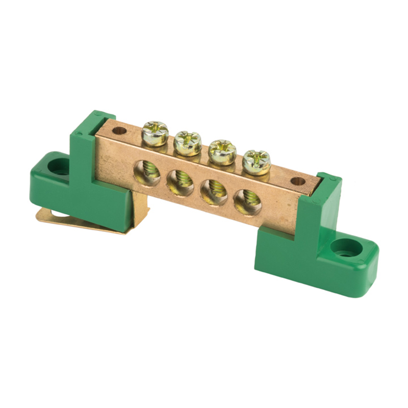 Шина "0" PE 6x9мм 4 отверстия латунь с контактной пластиной 2 зелёных угловых изолятора PROxima EKF