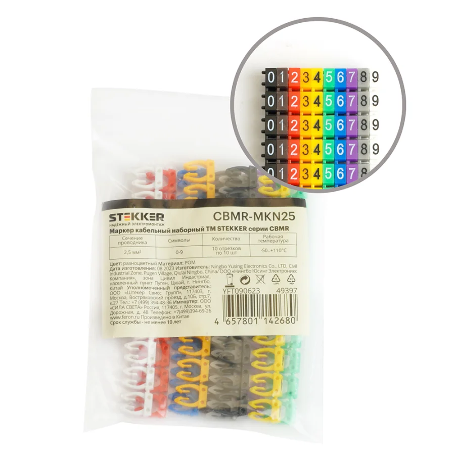 Маркер кабельный наборный "0-9" 2,5 мм2 CBMR-MKN25 (100шт/упак - 10 отрез. по 10 шт.) STEKKER 49397