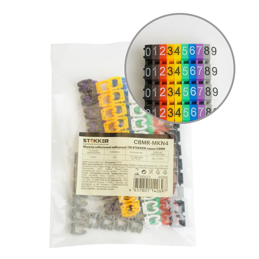 Маркер кабельный наборный "0-9" 4 мм2 CBMR-MKN4 (100 шт/упак - 10 отрез. по 10 шт.) STEKKER 49398