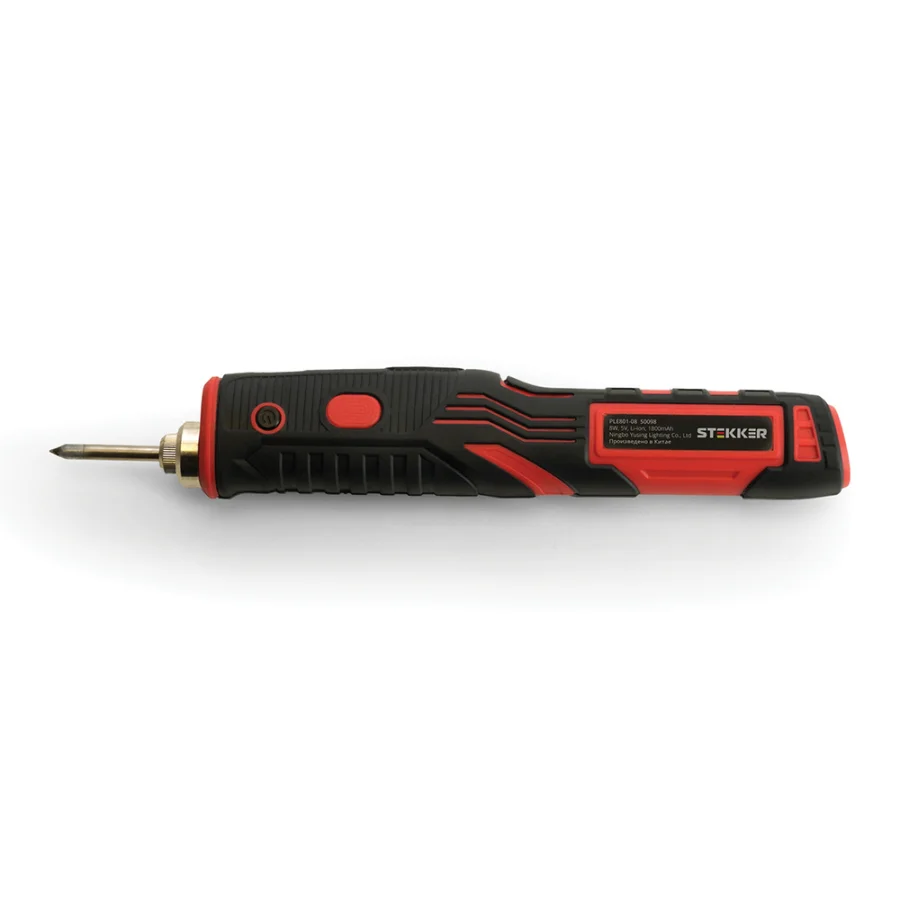 Паяльник беспроводной 8W, нихромовый нагреватель, 1800 mAh, 5В, красный/черный, PLE801-08 50 STEKKER