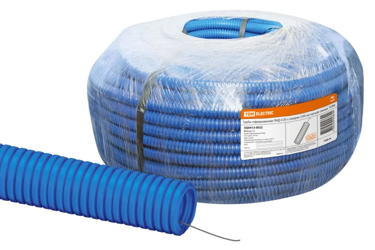 Труба гофр. ПНД 20 мм лёгкая с протяжкой СИНЯЯ TDM TDM Electric SQ0413-0022