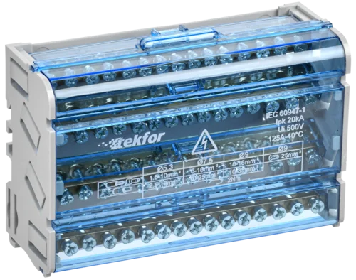 Токоведущие шины изготовлены из медно-цинкового сплава марки ЛС59 по ГОСТ 15527-2004.|Материал корпуса: пластик, не поддерживающий горение.|Возможность установки на DIN-рейку и на